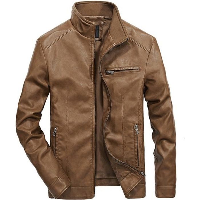 veste en cuir kaki homme