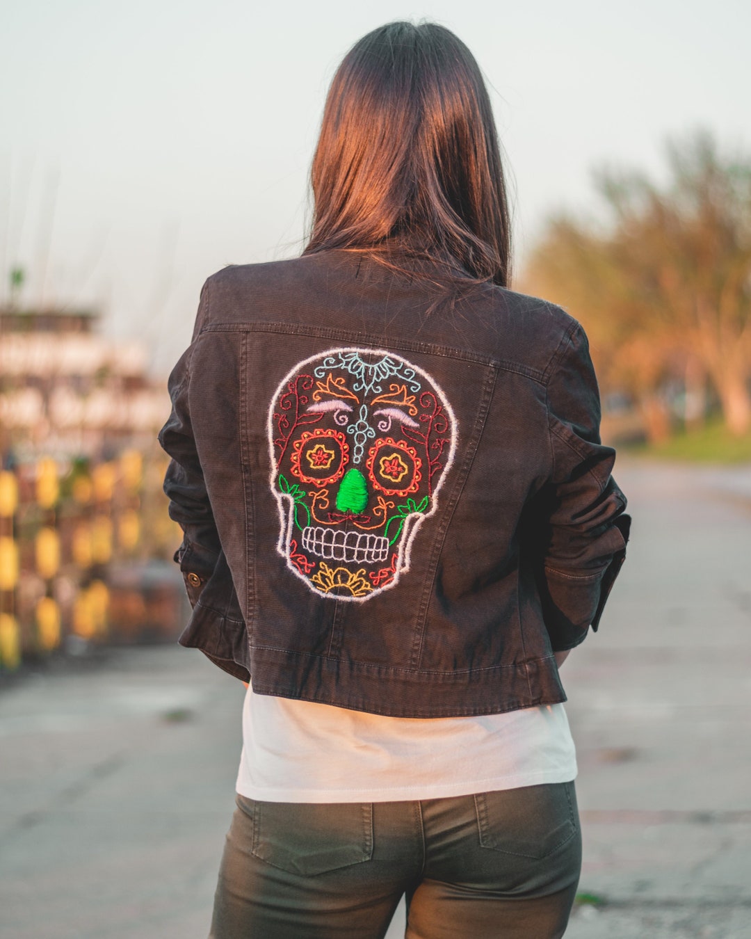 veste en jean tete de mort femme