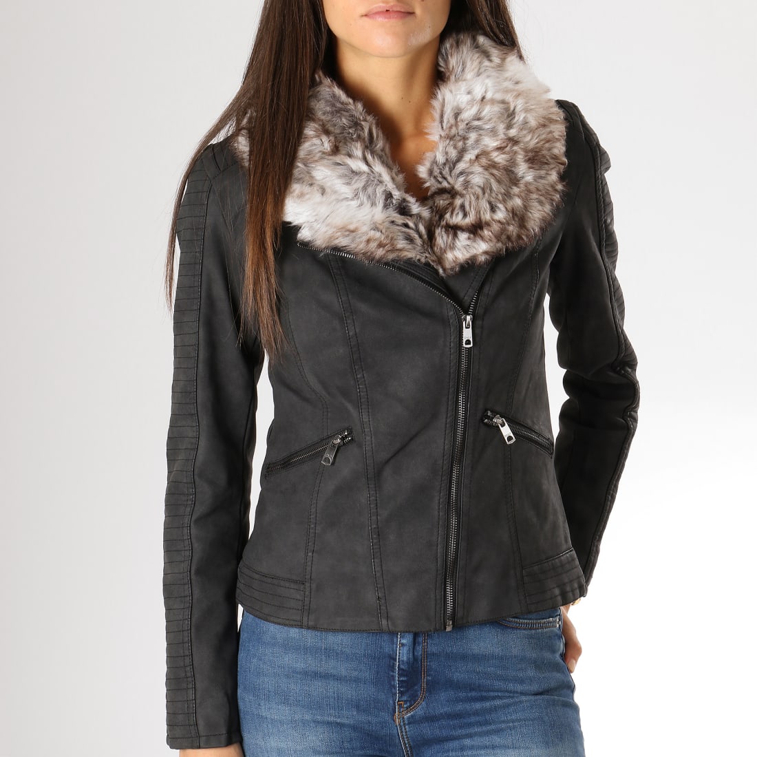 veste fourrure noir femme