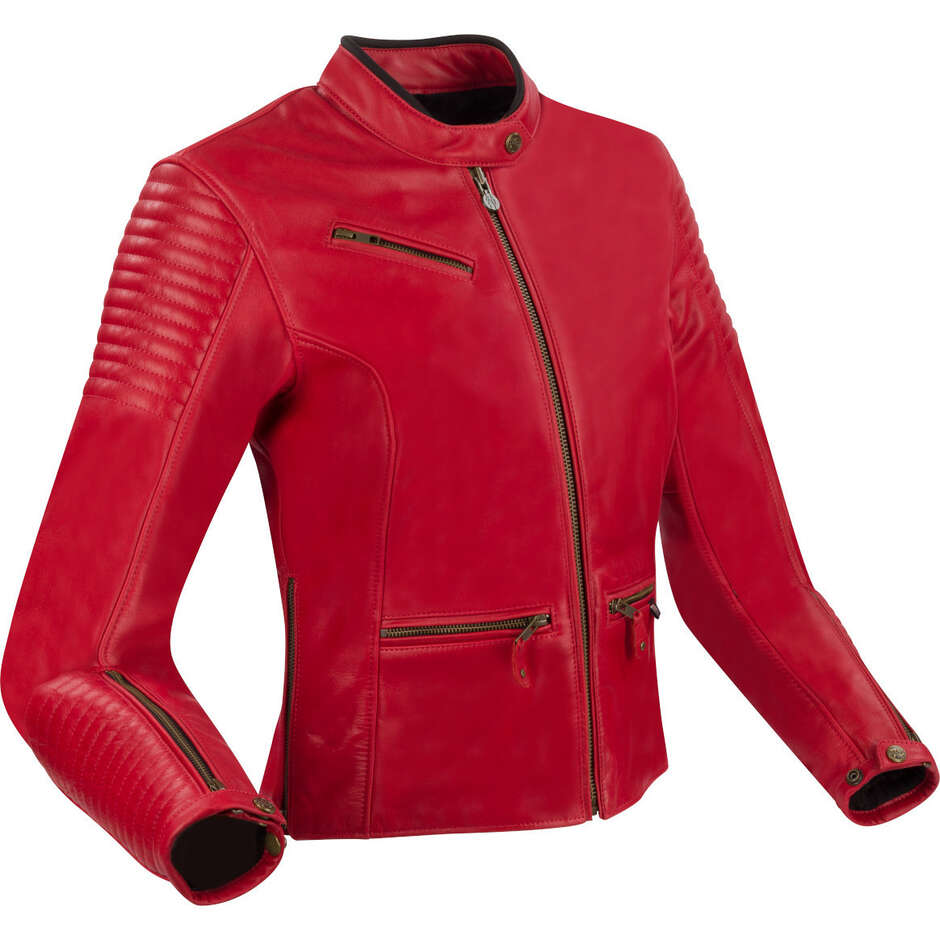 veste moto femme rouge