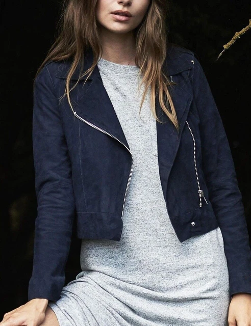 veste simili cuir femme bleu marine