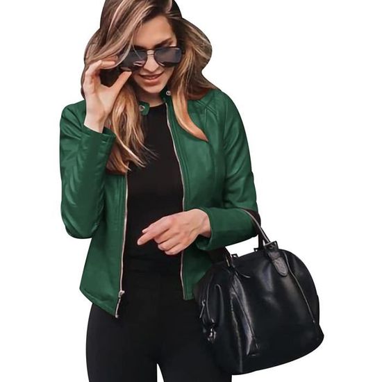 veste simili cuir vert