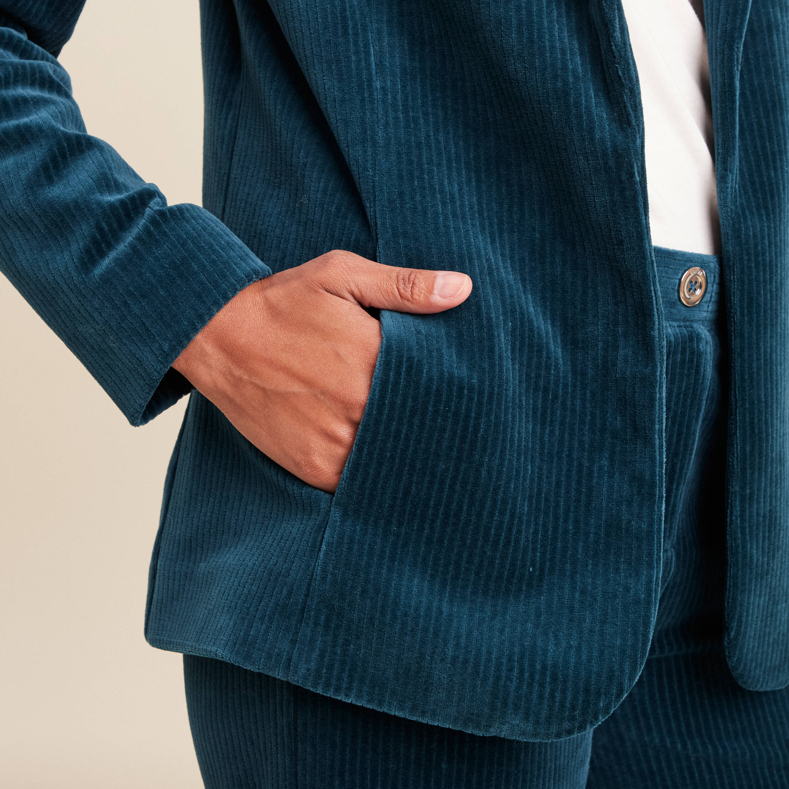 veste velours bleu canard