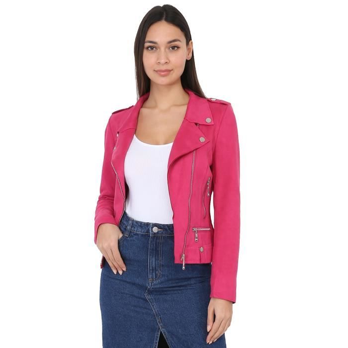 blouson biker suedine femme