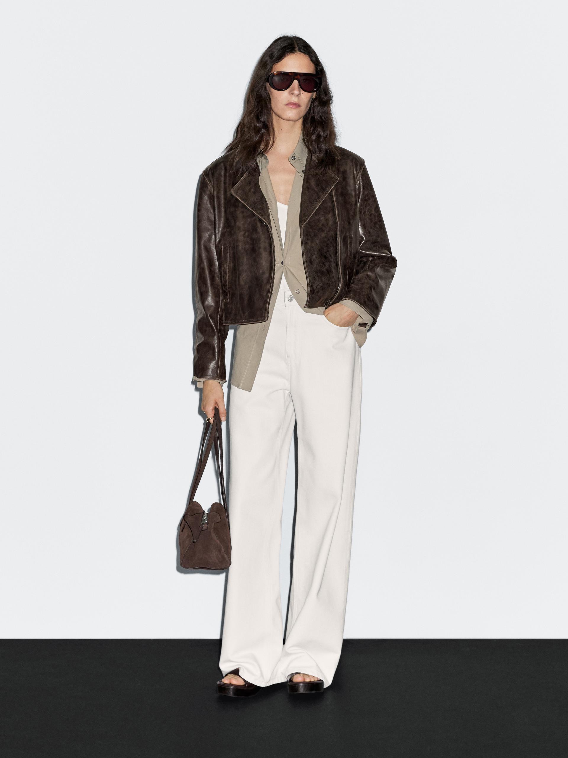 blouson cuir massimo dutti femme