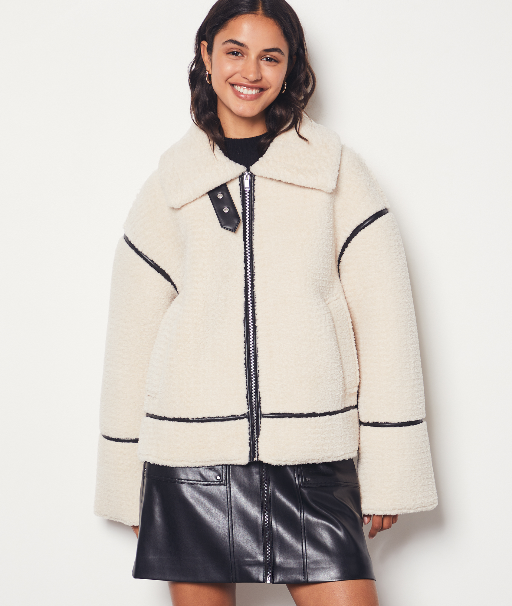 blouson fausse fourrure ecru