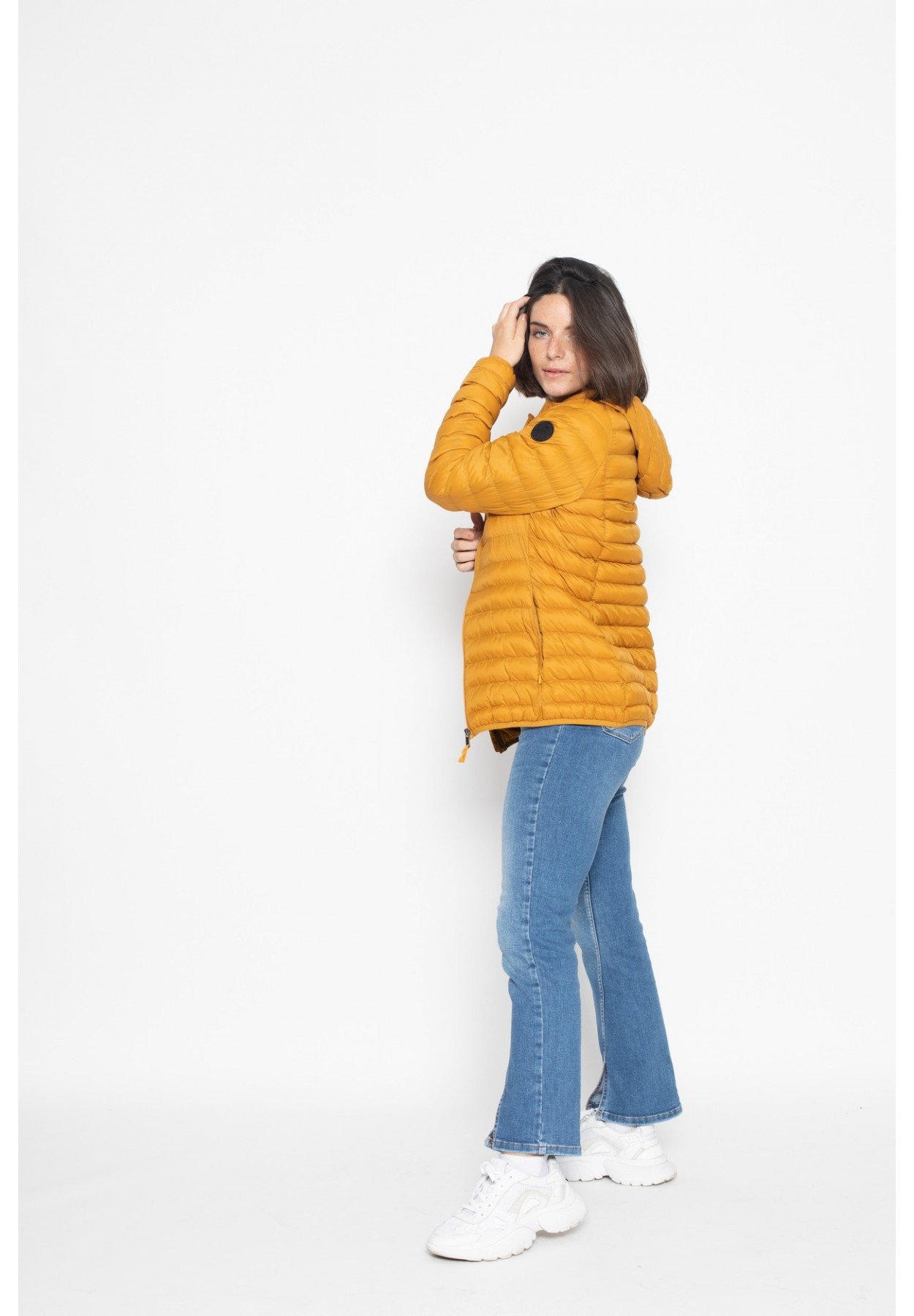 doudoune longue moutarde femme