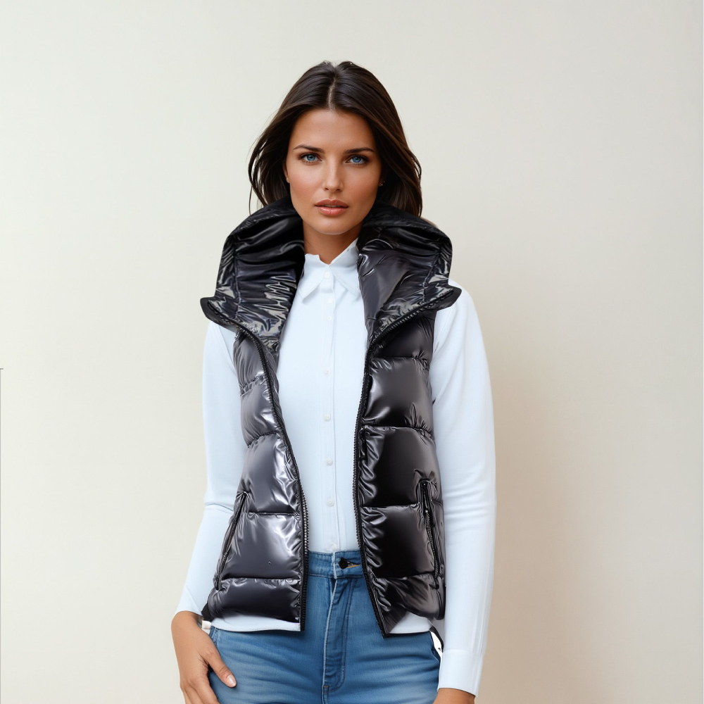 doudoune sans manche a capuche fourrure femme
