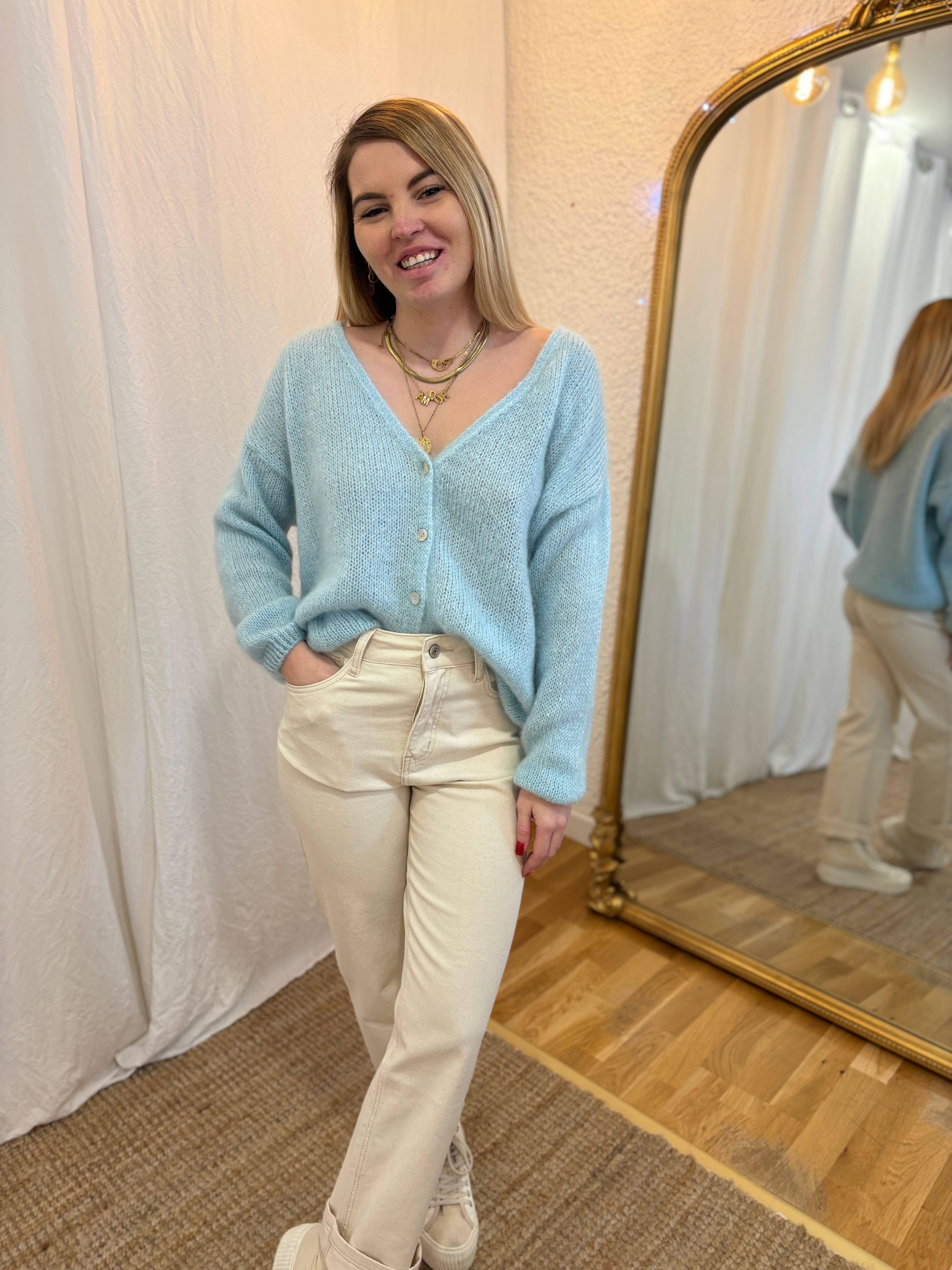 gilet femme laine bleu ciel