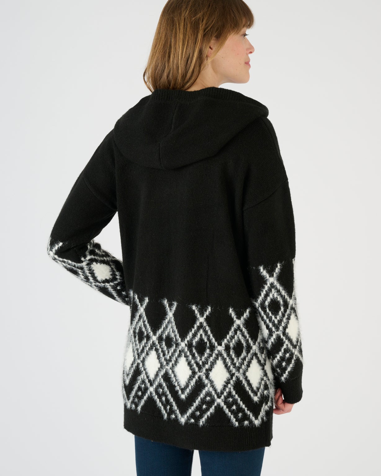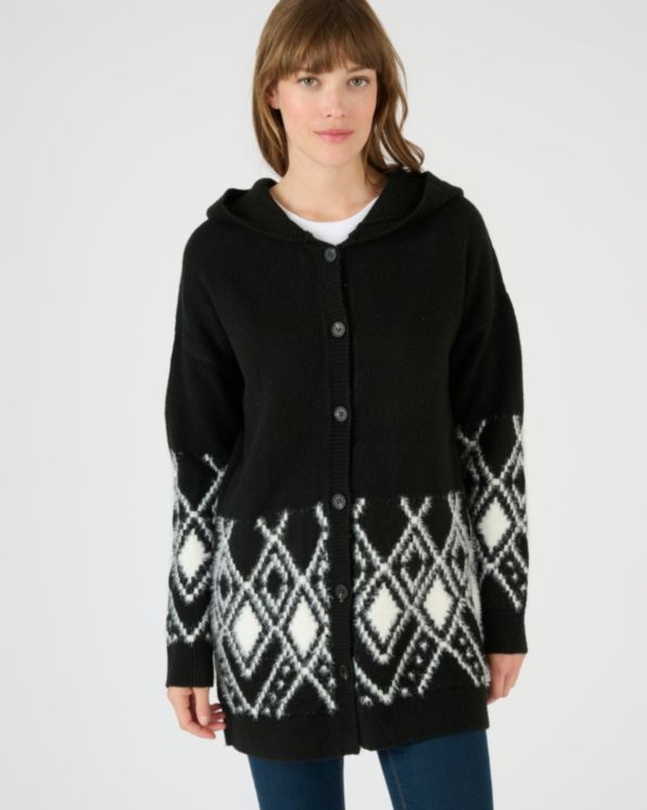 gilet long a capuche grosse maille