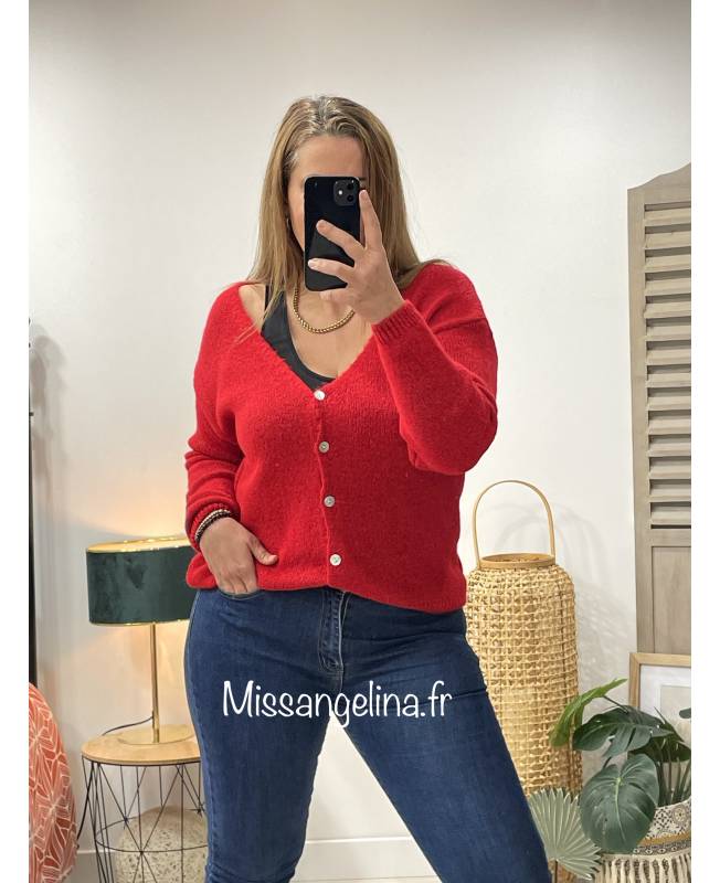 gilet maille rouge