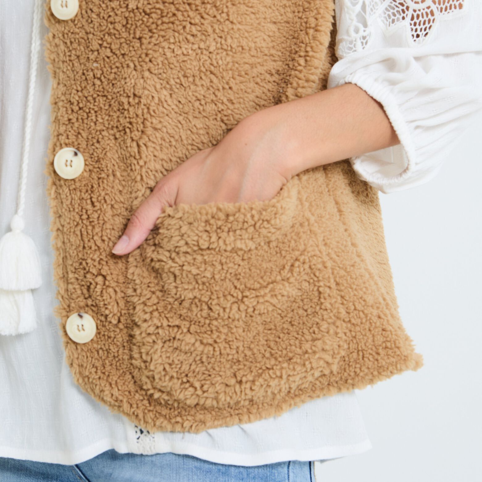 gilet moumoute sans manche femme