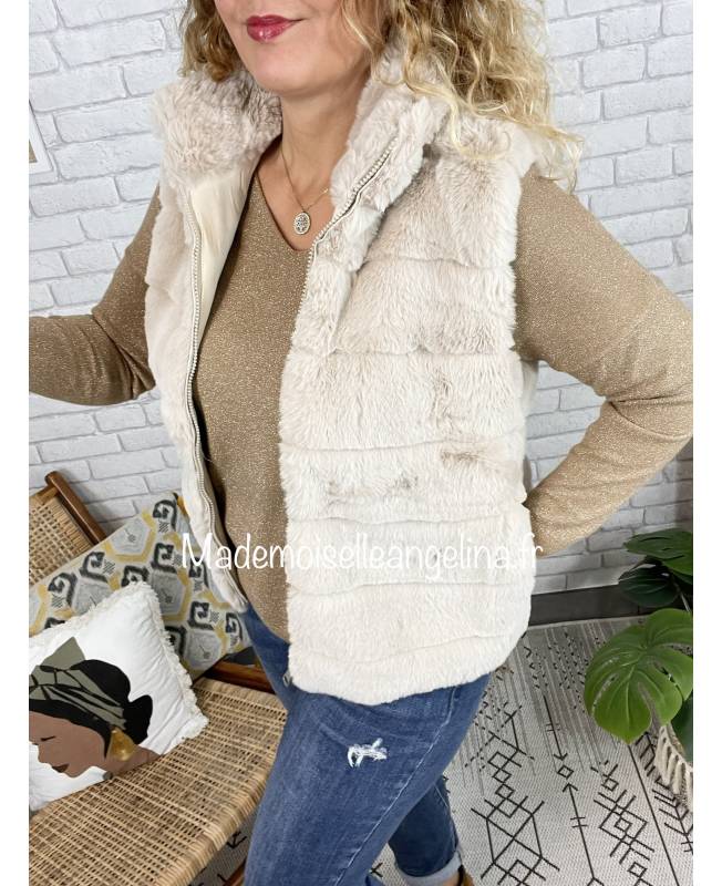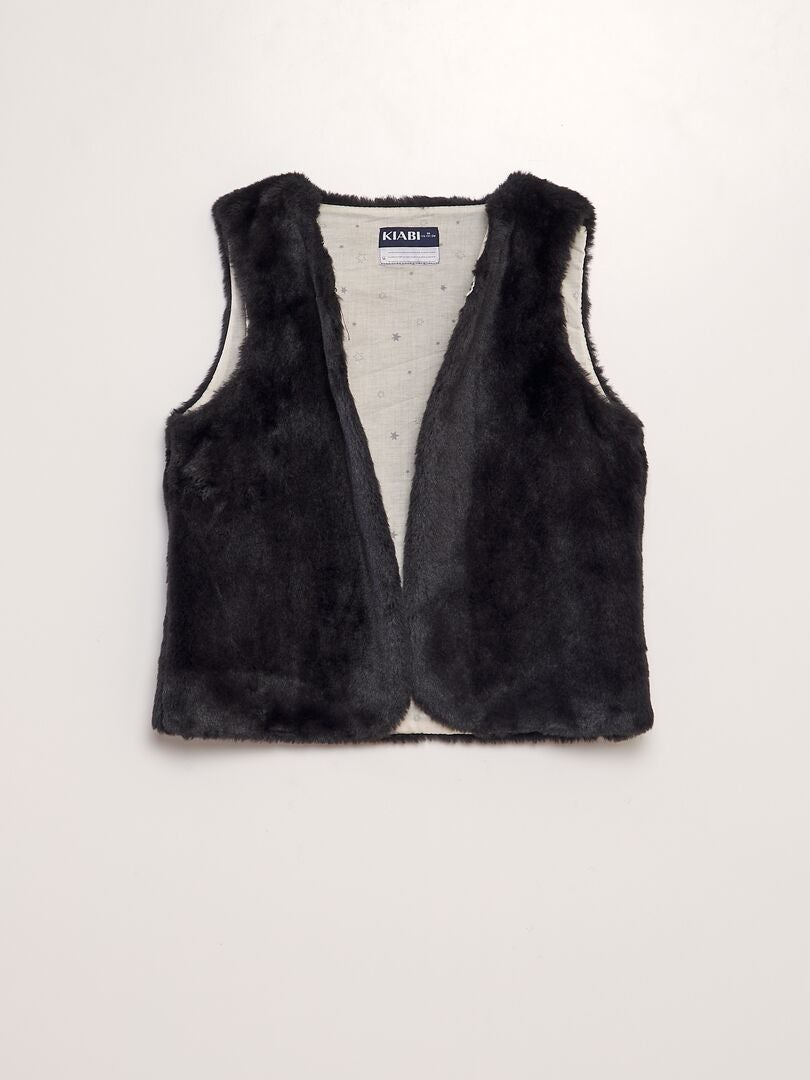 gilet noir sans manche fausse fourrure