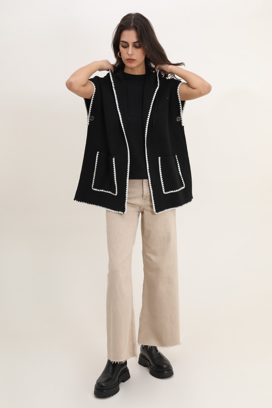 gilet poilu noir femme