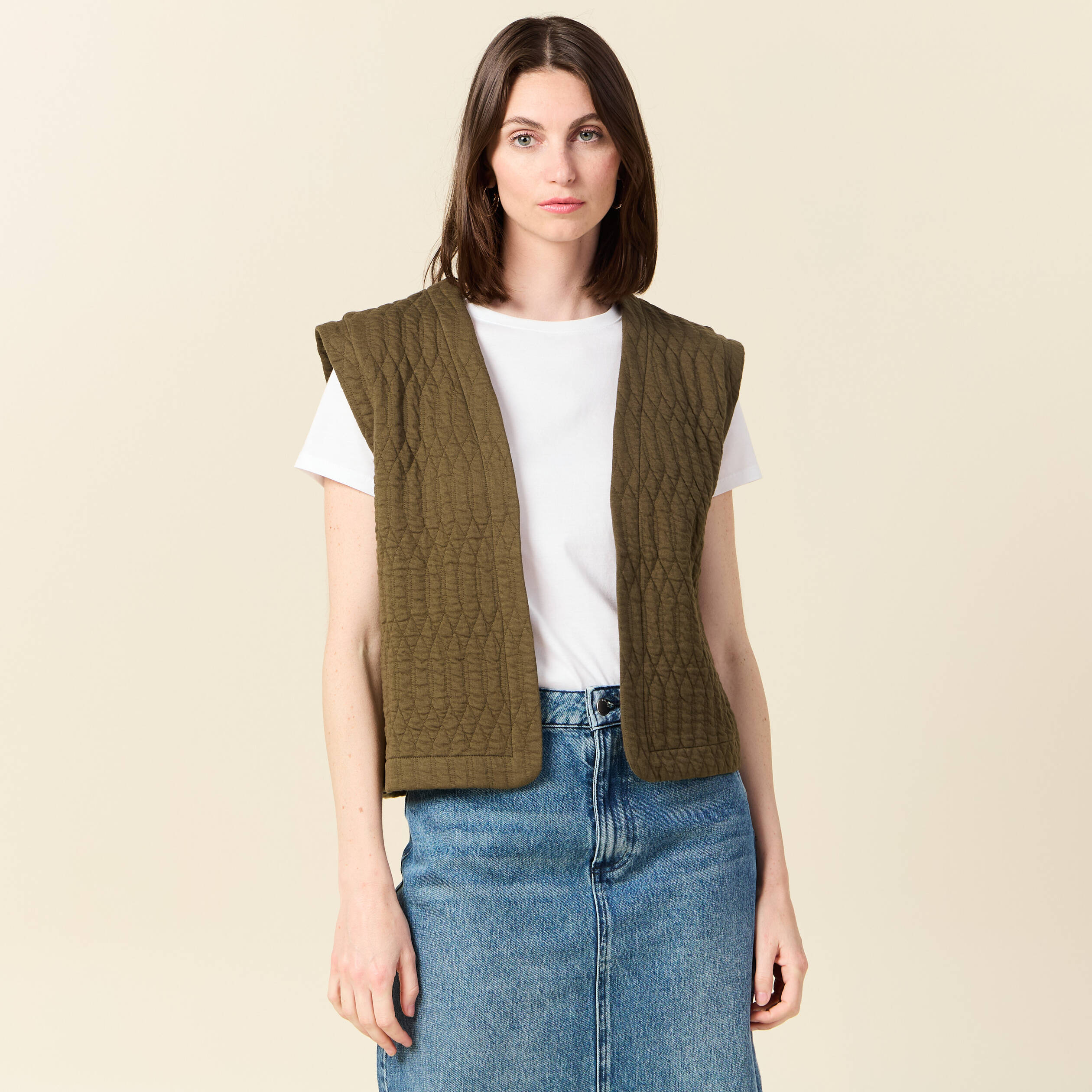 gilet sans manche kaki femme