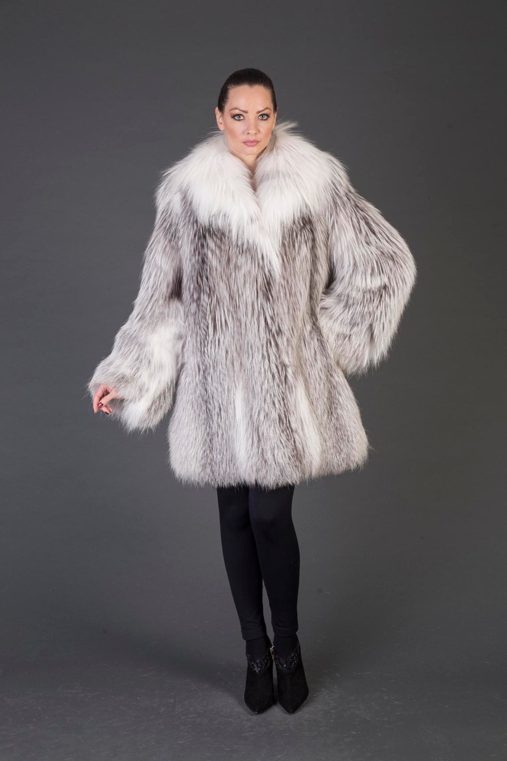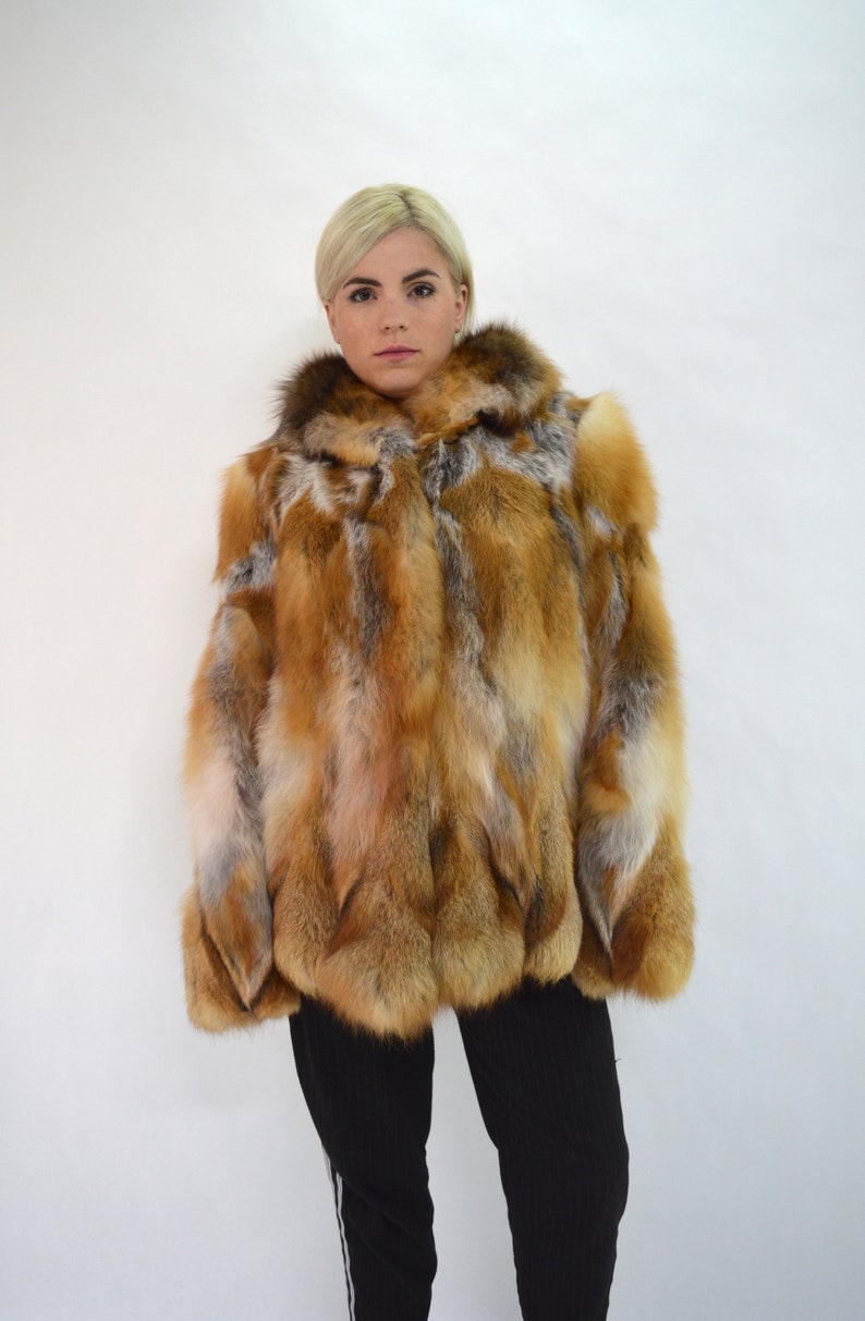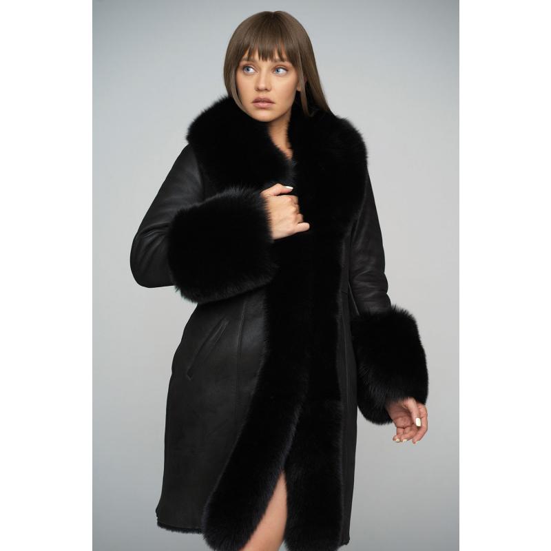 manteau cuir et fourrure renard
