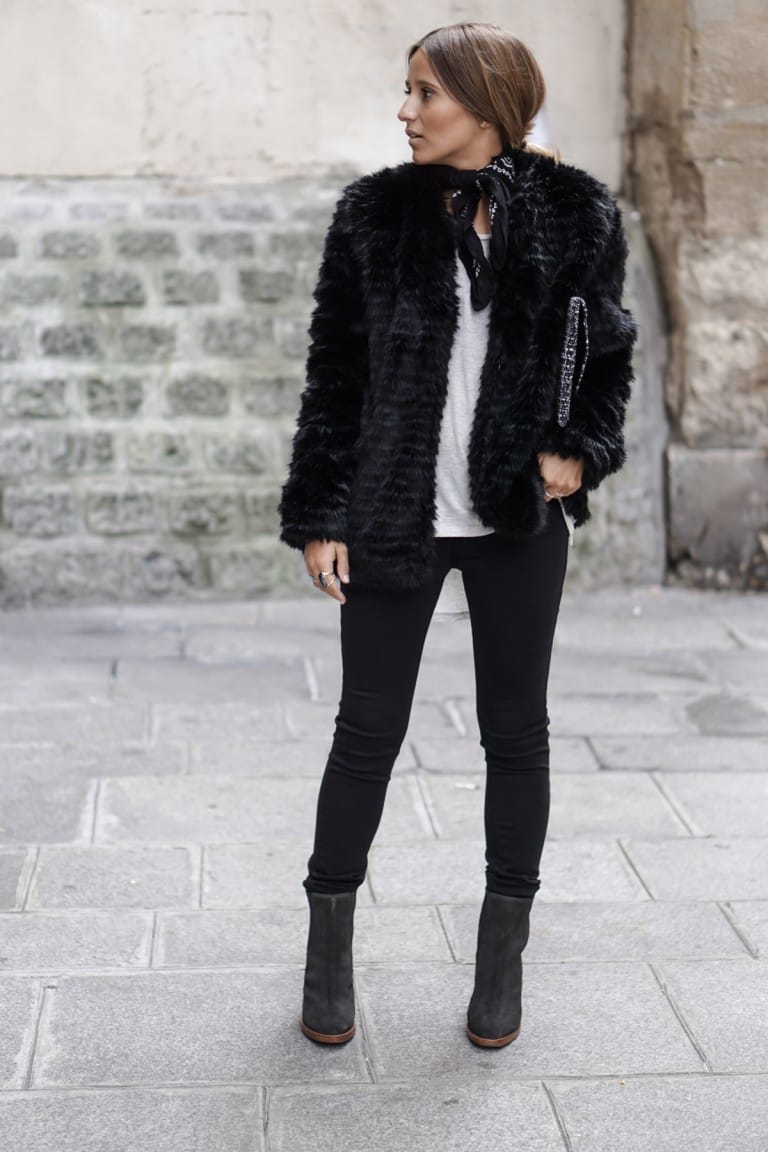 manteau faux cuir et fourrure
