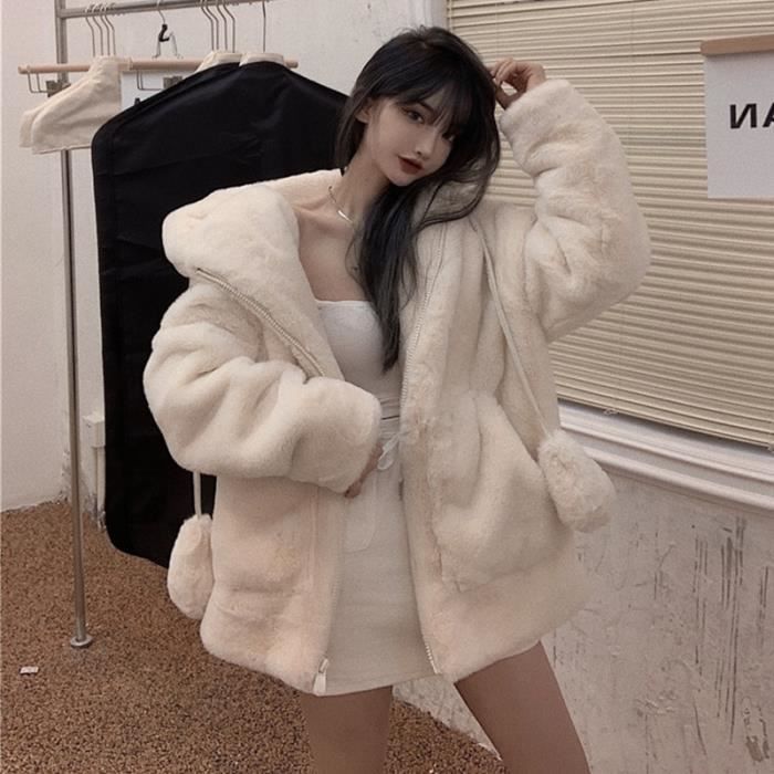 manteau femme capuche fourrure lapin