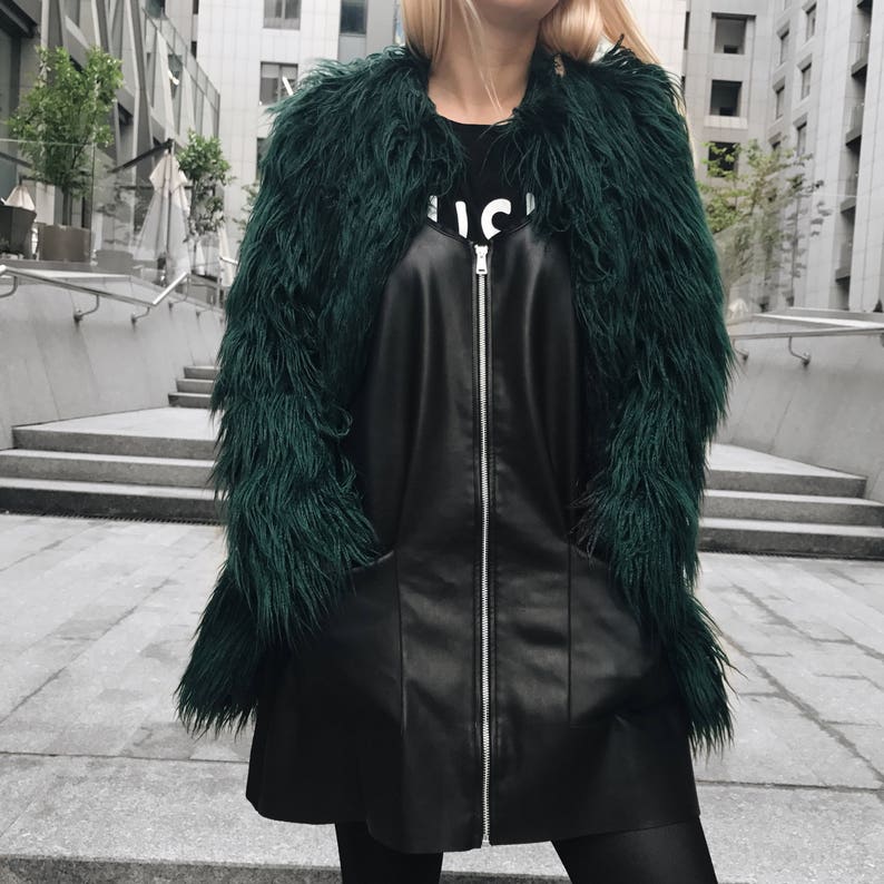 manteau fourrure vert emeraude
