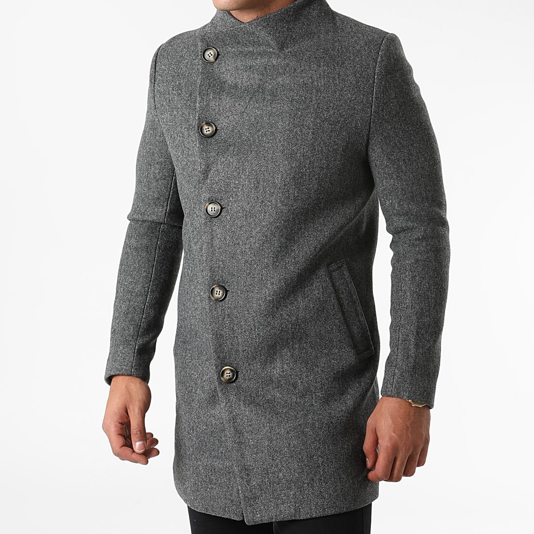 manteau gris col fourrure
