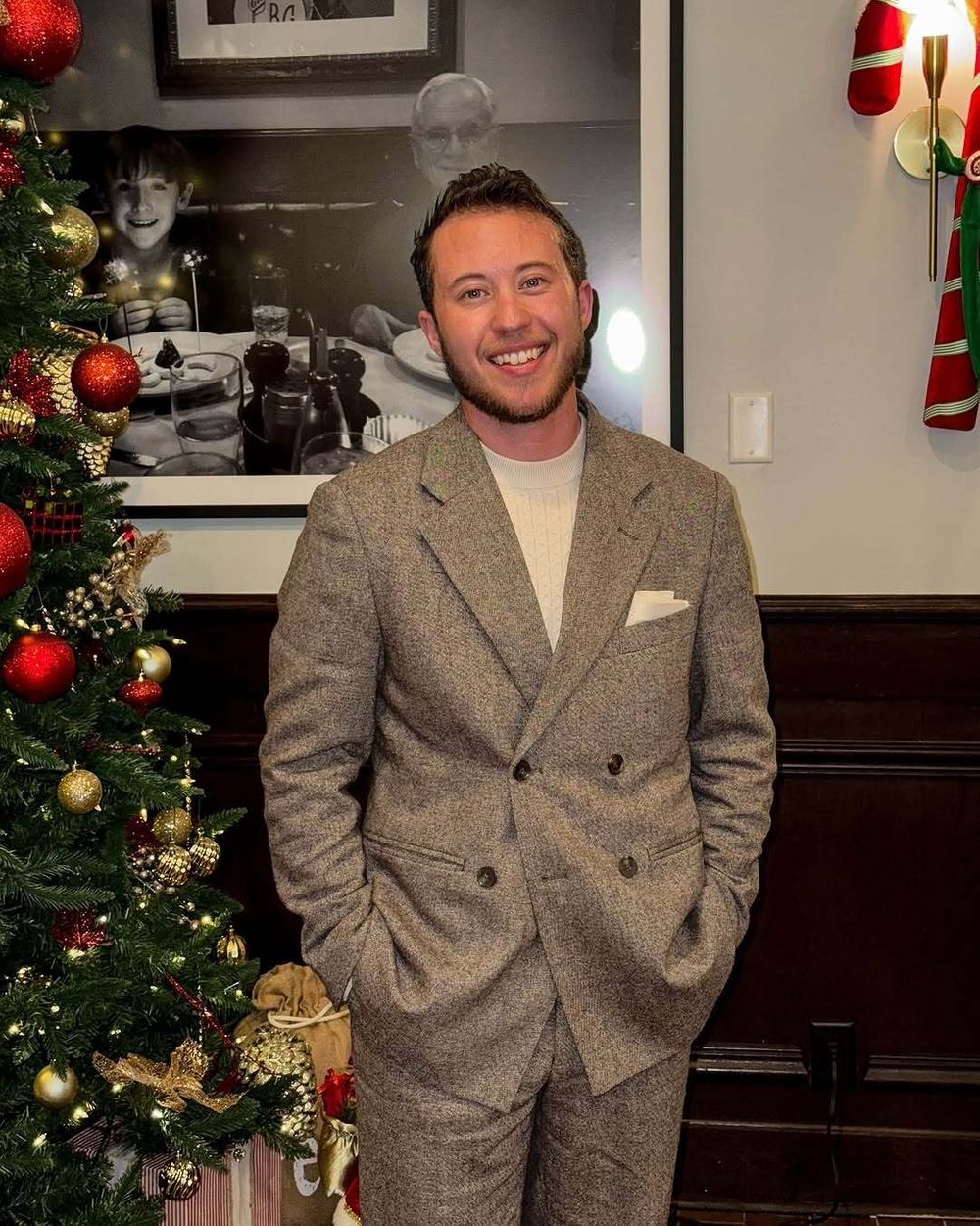 manteau gris costume bleu