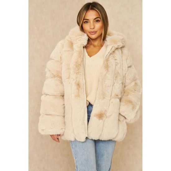 manteau imitation fourrure beige