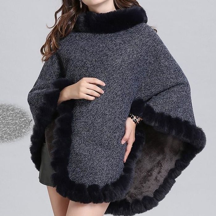 poncho col fausse fourrure