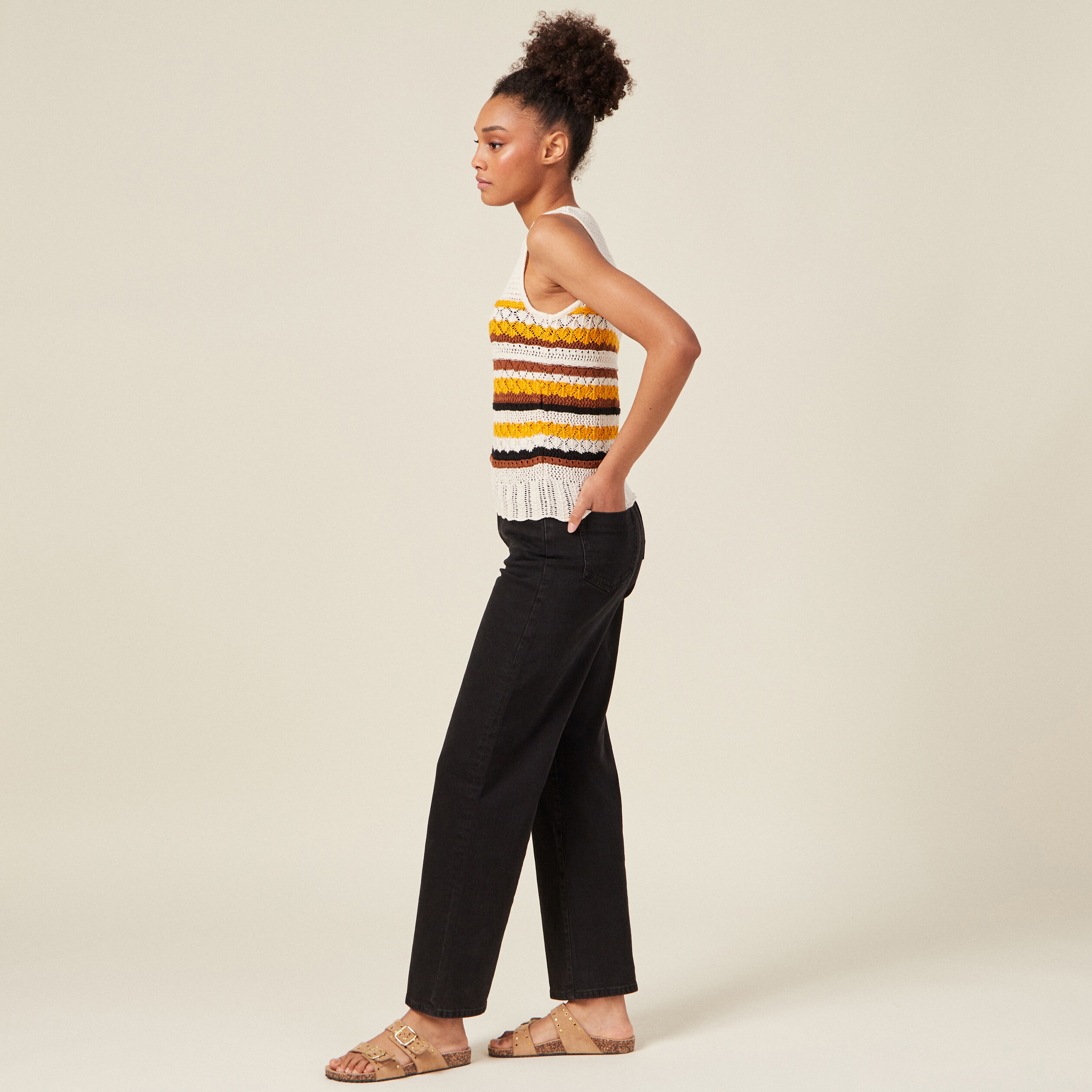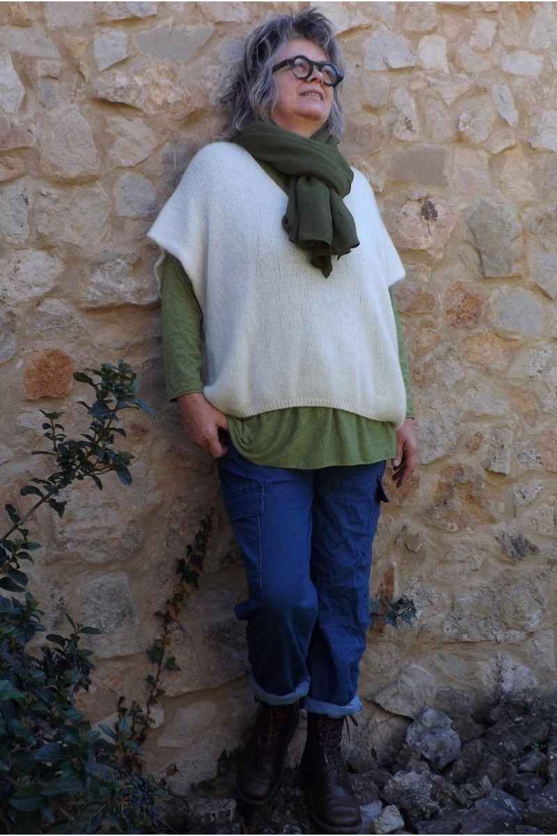 pull sans manche creme