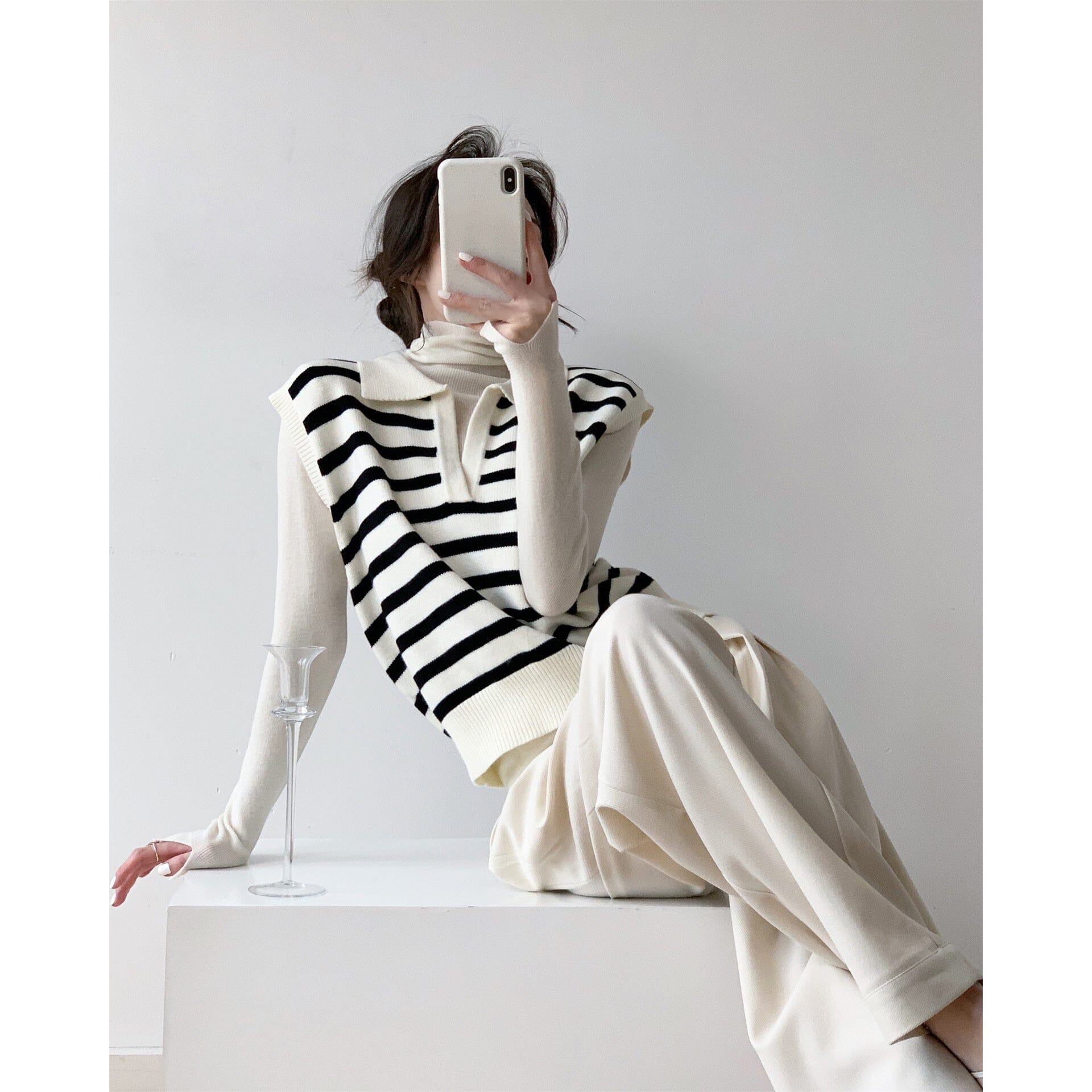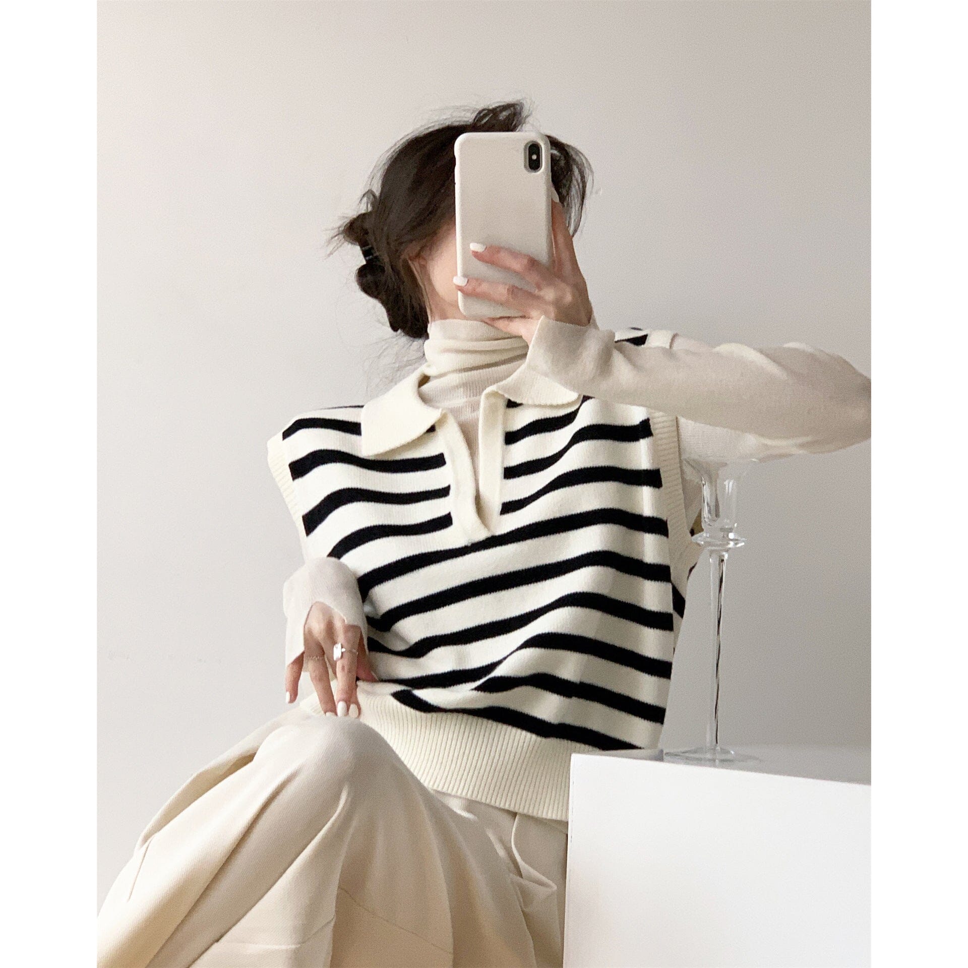 pull sans manche noir et blanc