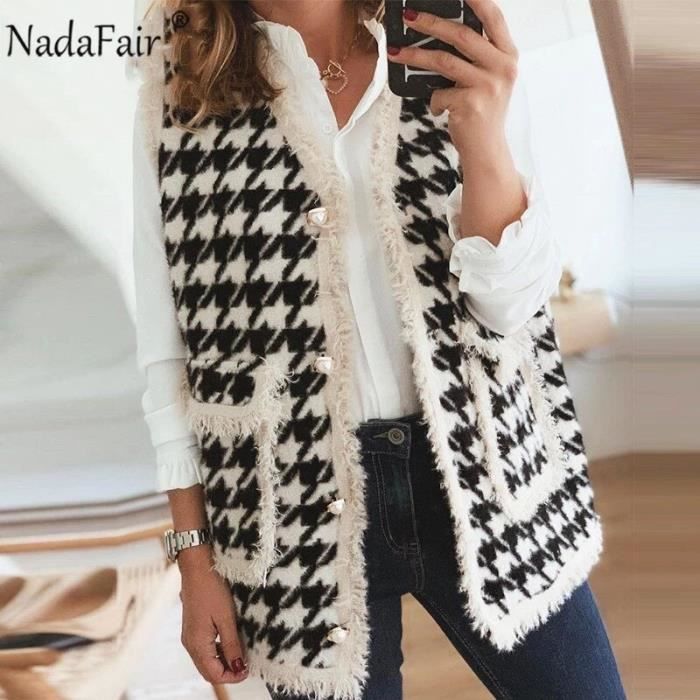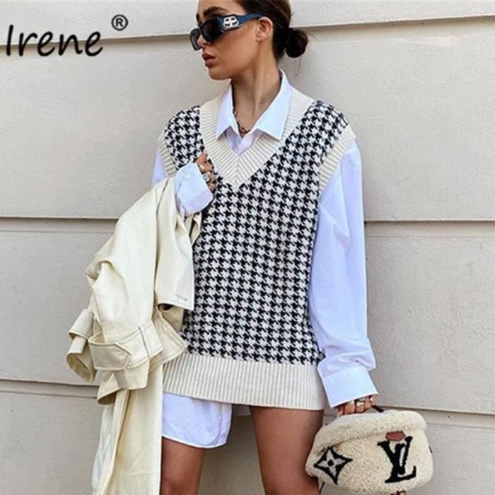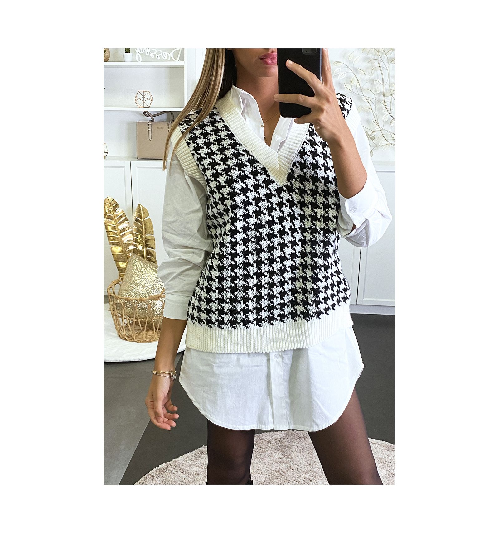 pull sans manche pied de poule