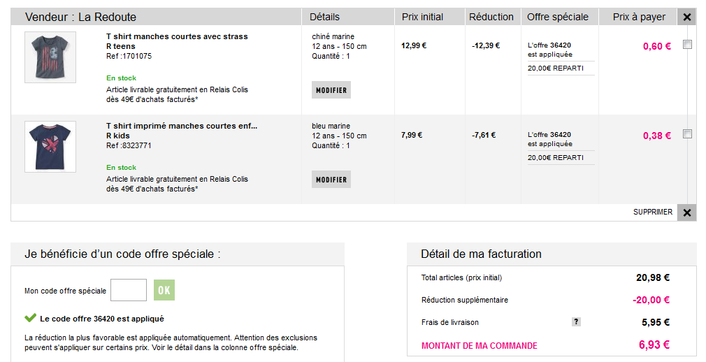 reduction la redoute frais de port offert