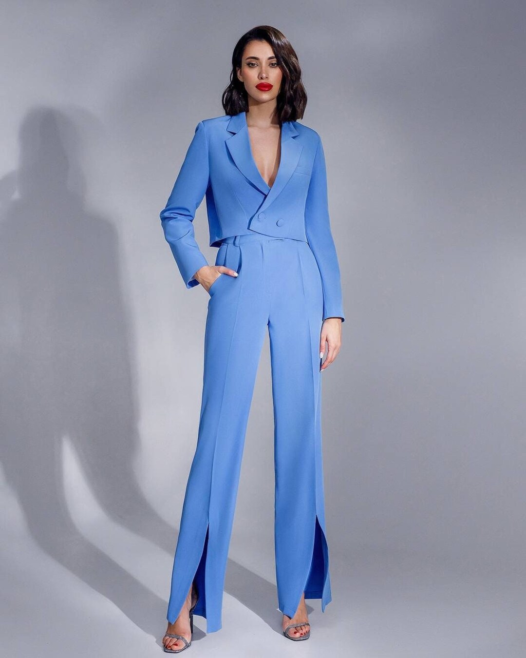 tailleur pantalon femme bleu electrique