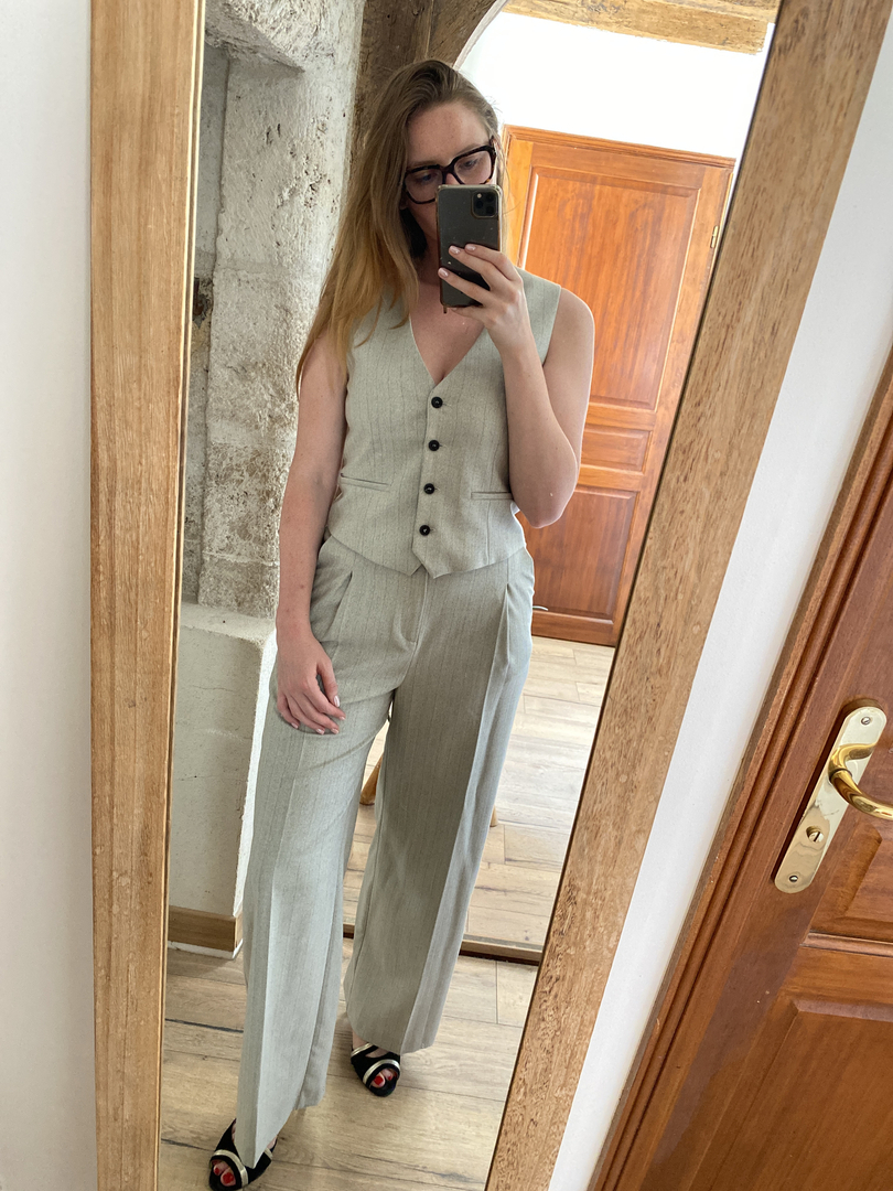 tailleur pantalon gris clair femme