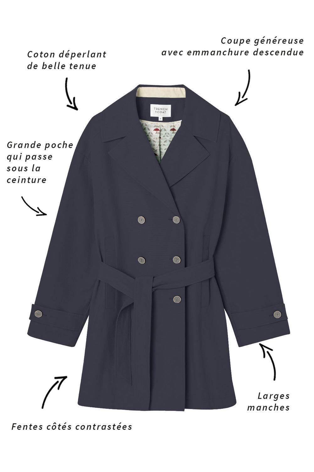 trench court femme gris