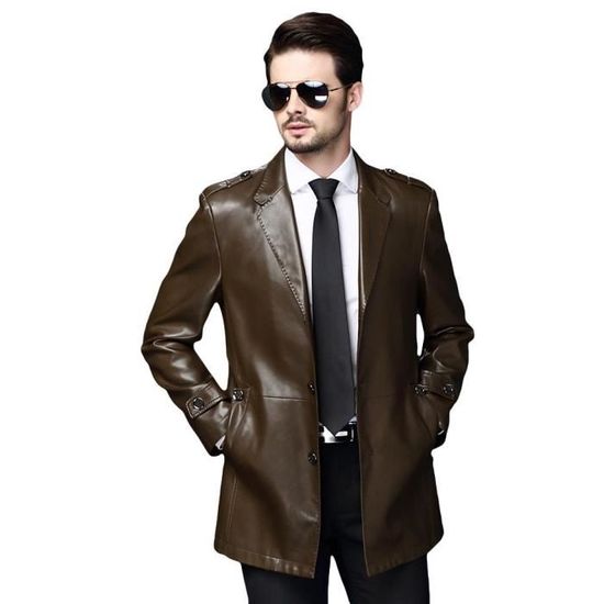 veste cuir mi long homme