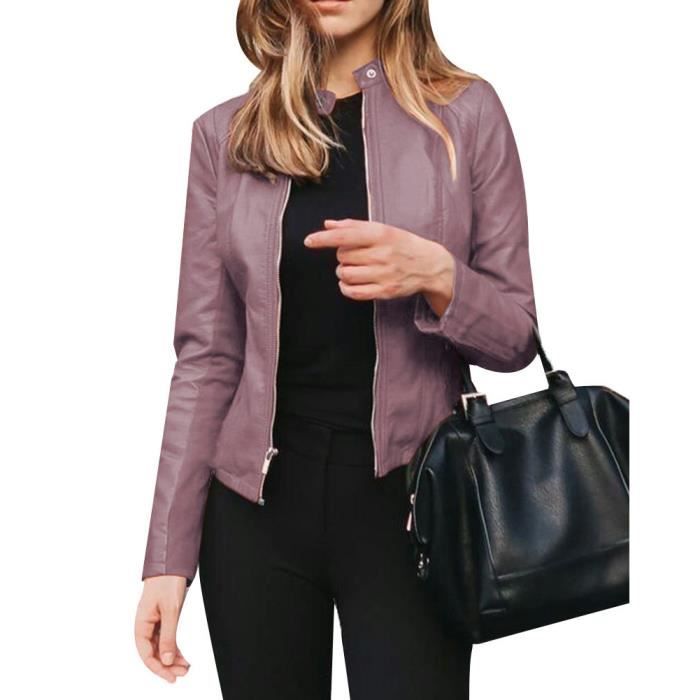 veste en cuir violet femme