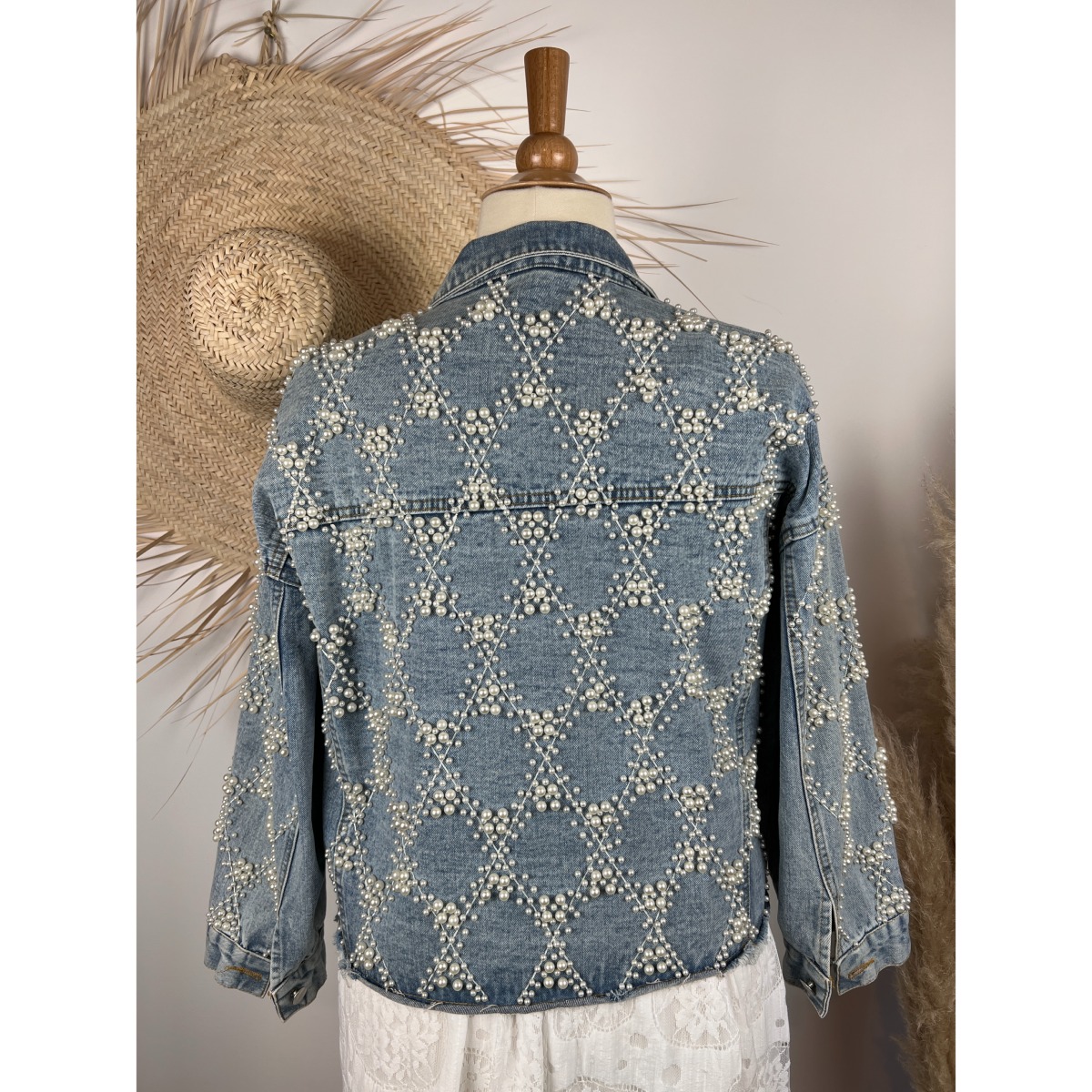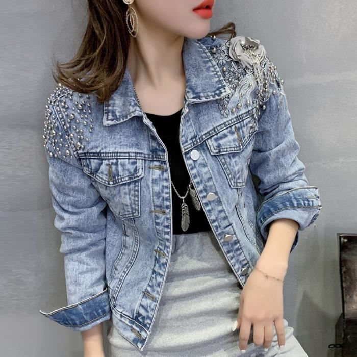 veste en jean longue femme avec perles