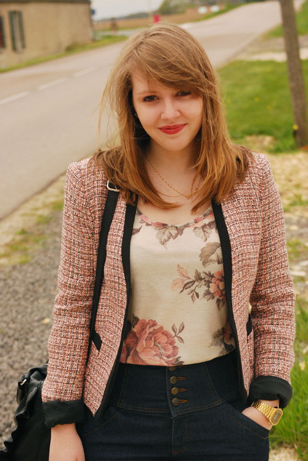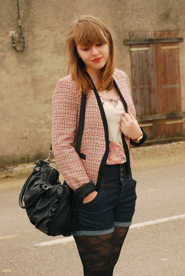 veste en tweed rose