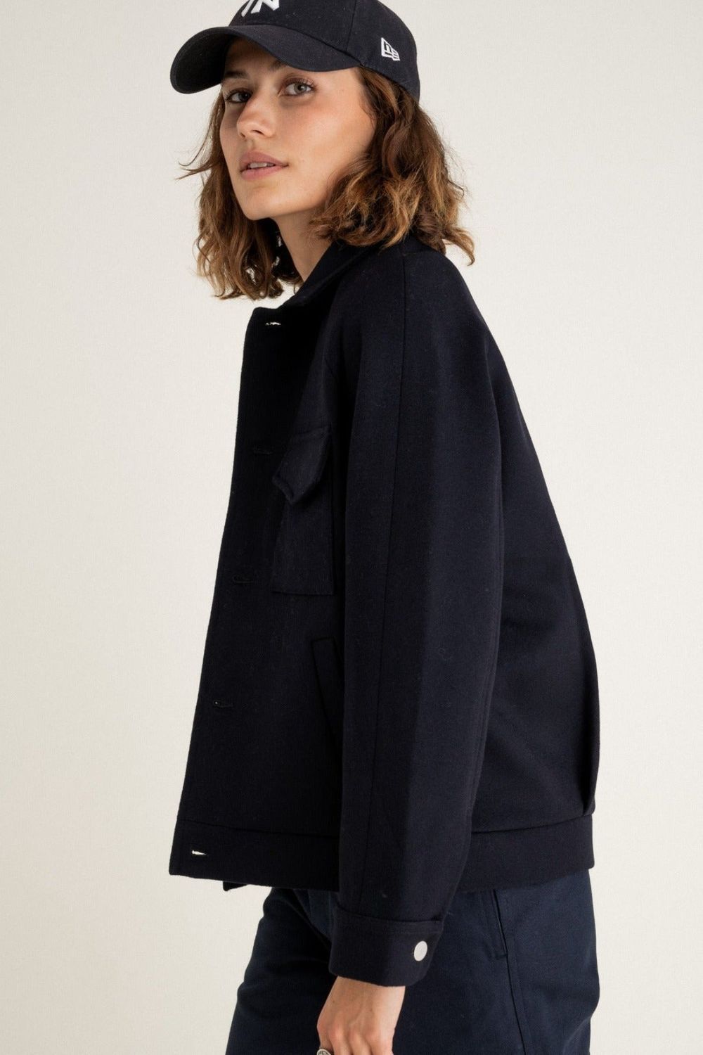 veste laine bleue marine femme