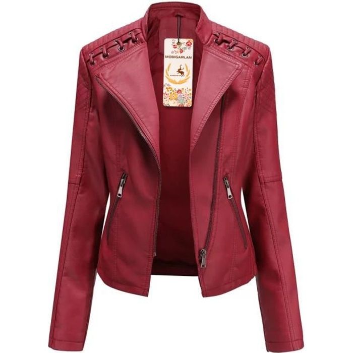 veste longue cuir rouge