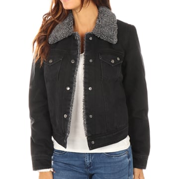 veste noir col mouton femme