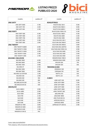 listino prezzi merida 2021