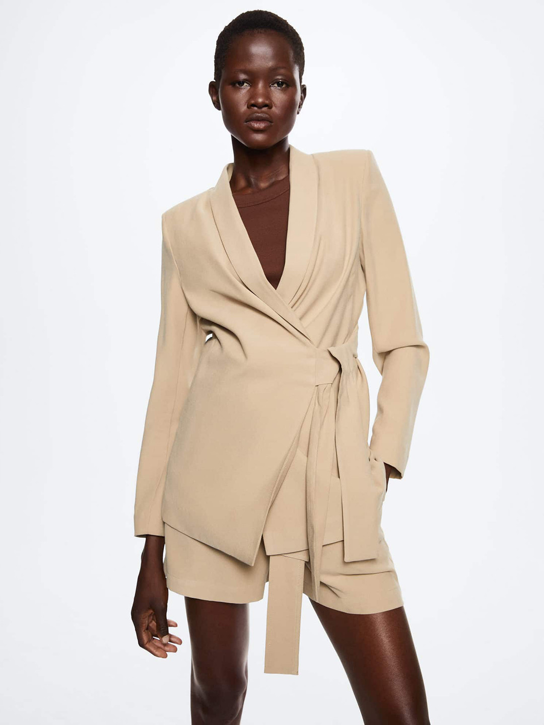 blazer beige femme mango