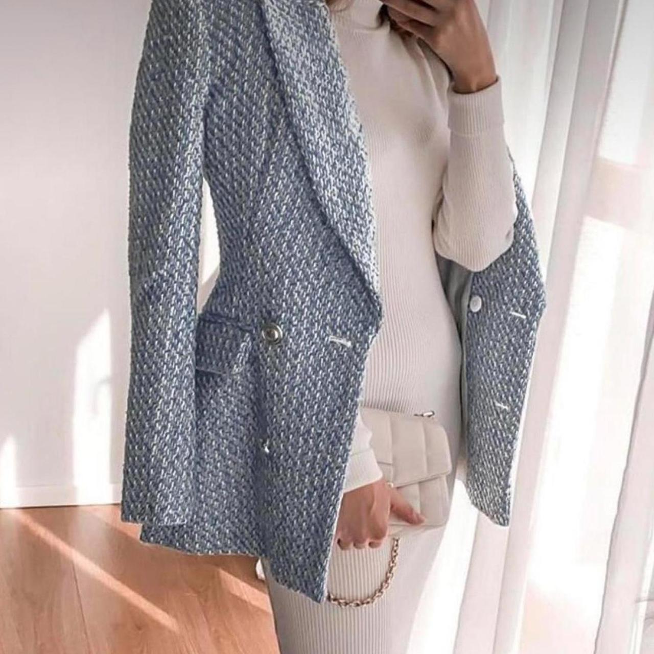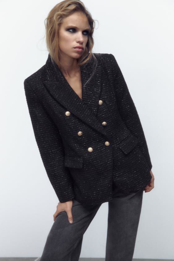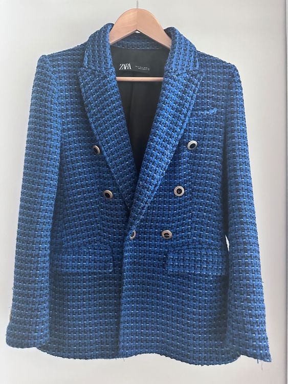 blazer tweed zara bleu