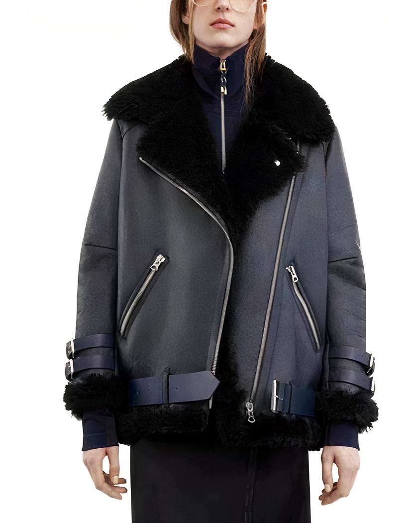 blouson aviateur noir et blanc femme