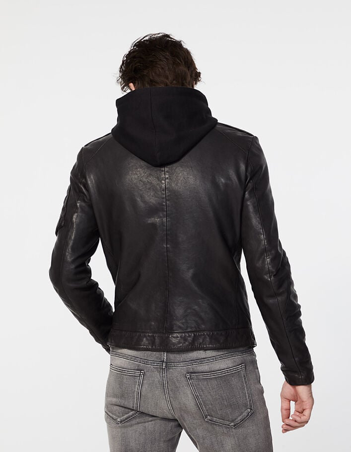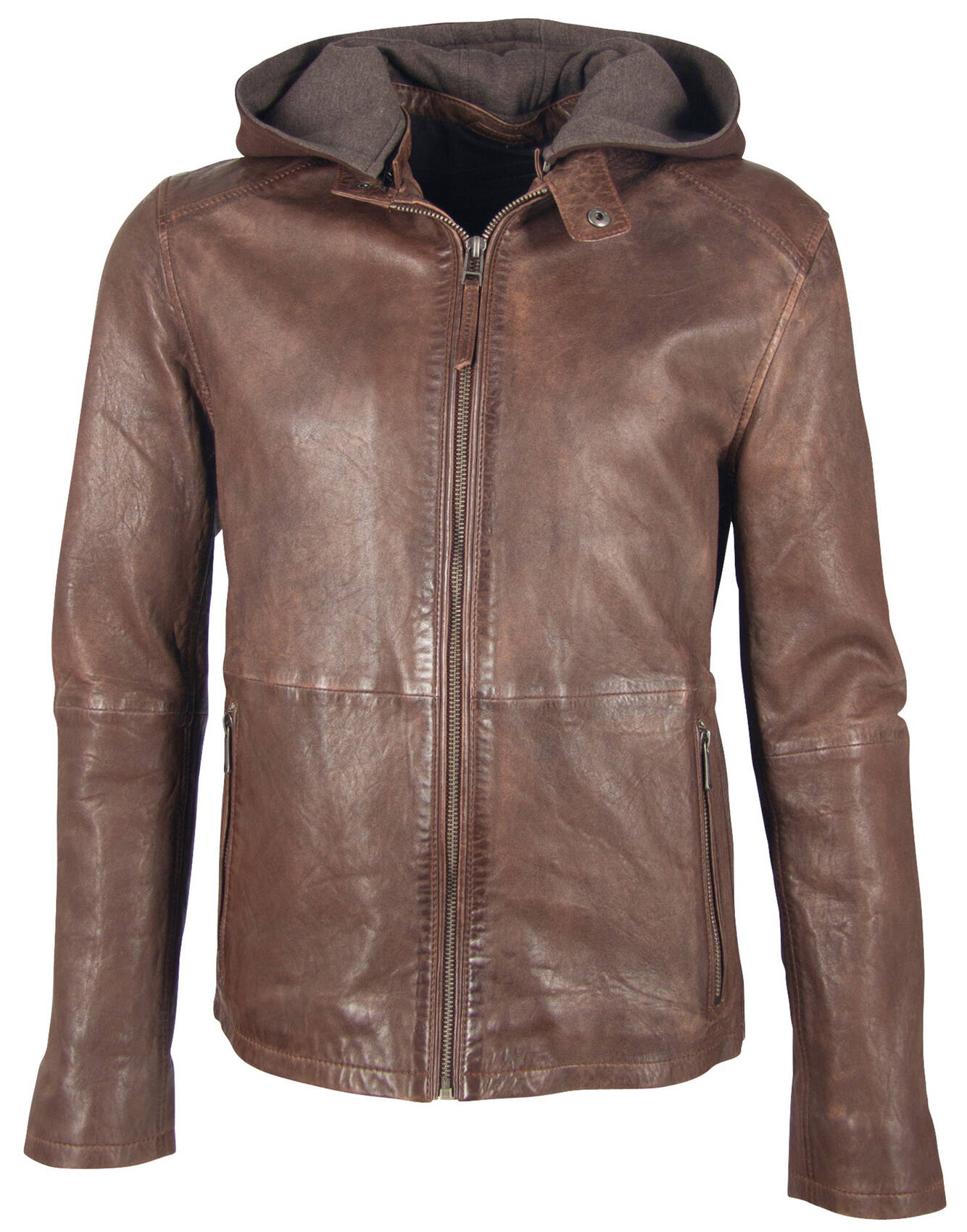 blouson cuir capuche homme marron
