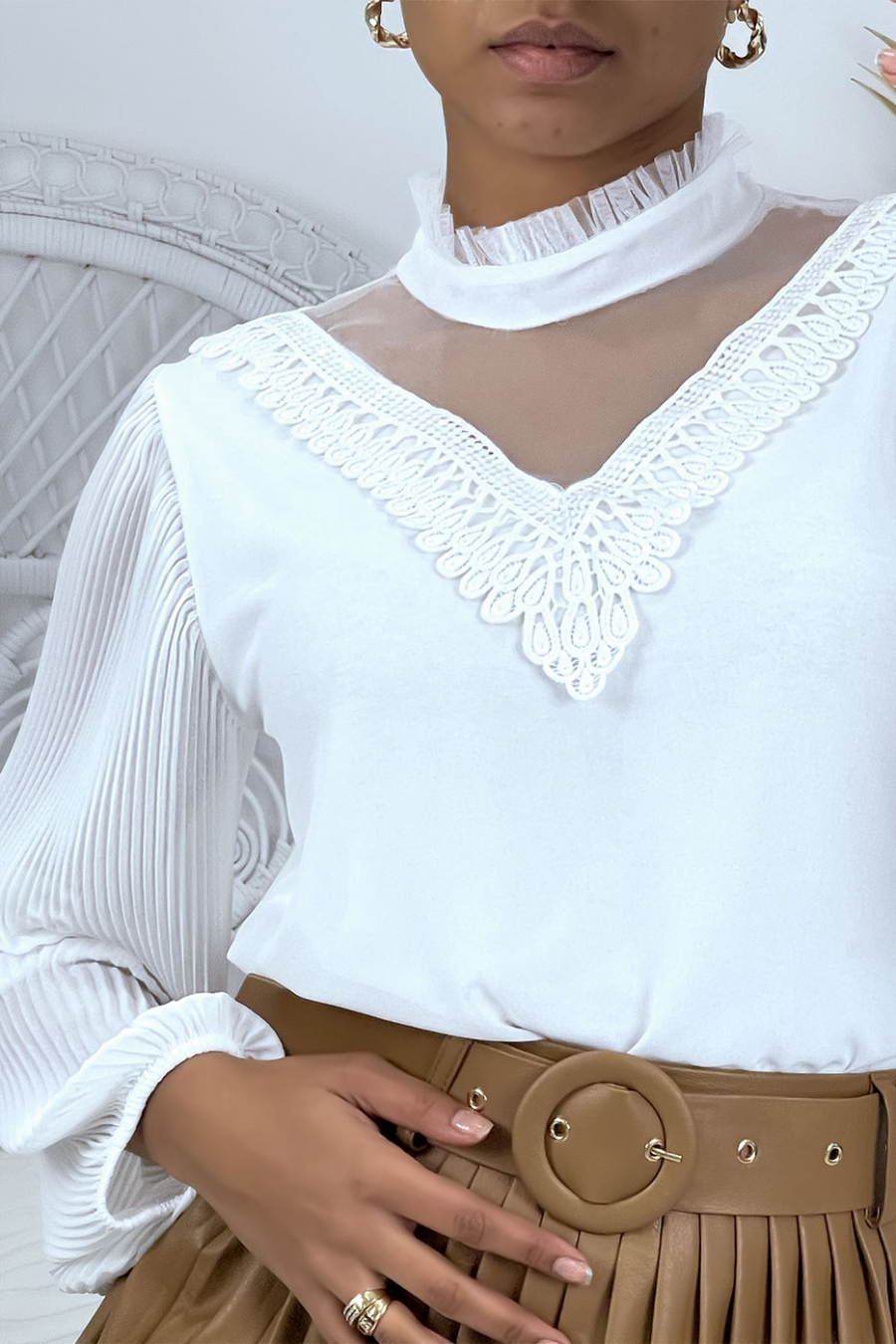 blouson dentelle blanc