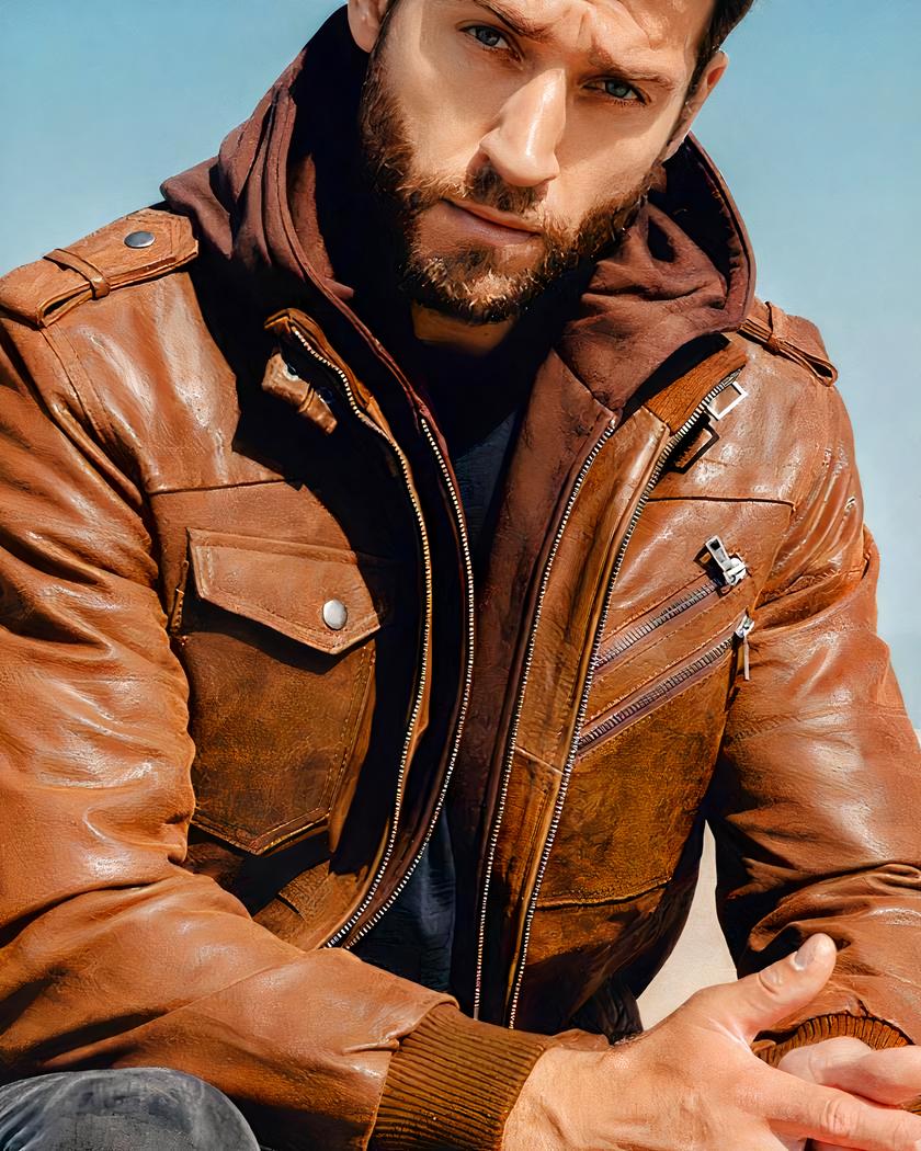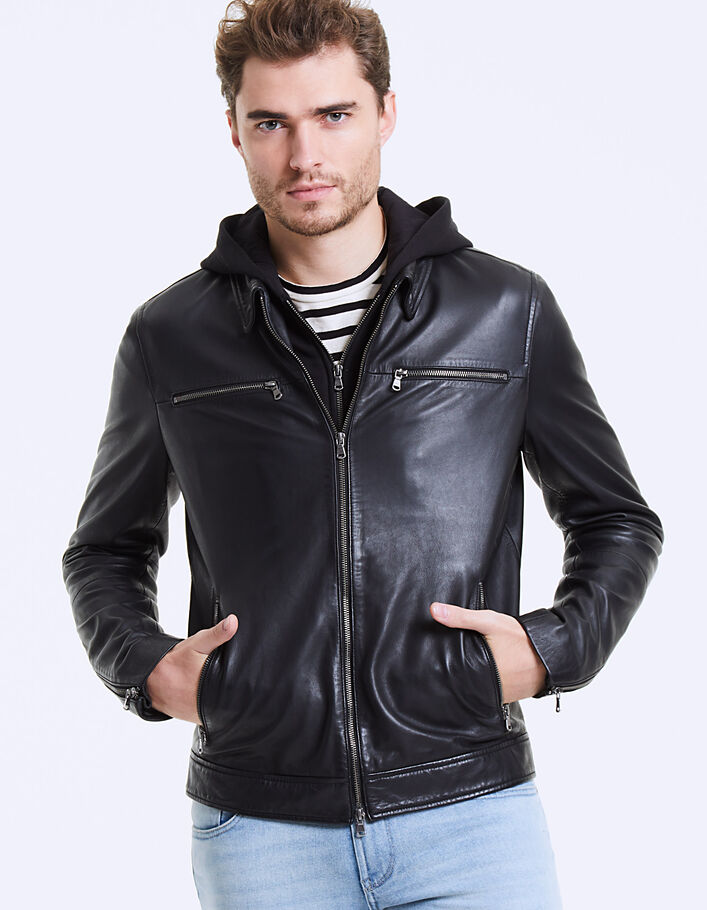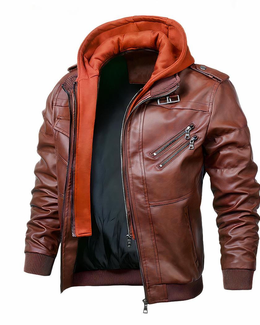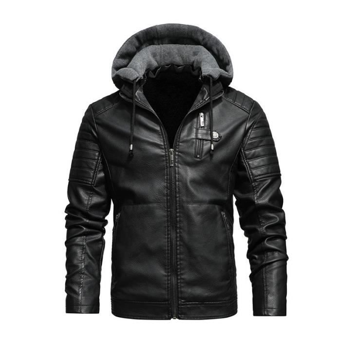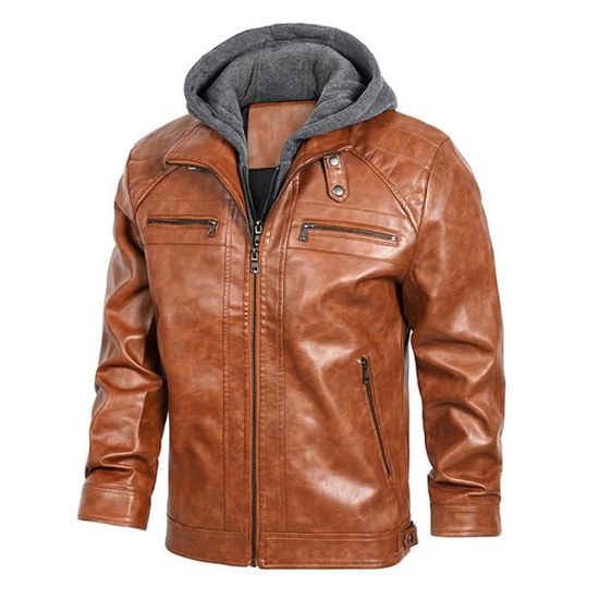 blouson en cuir avec capuche homme