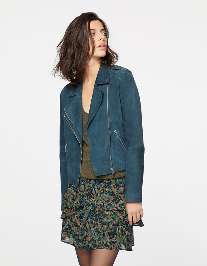 blouson en cuir vert femme