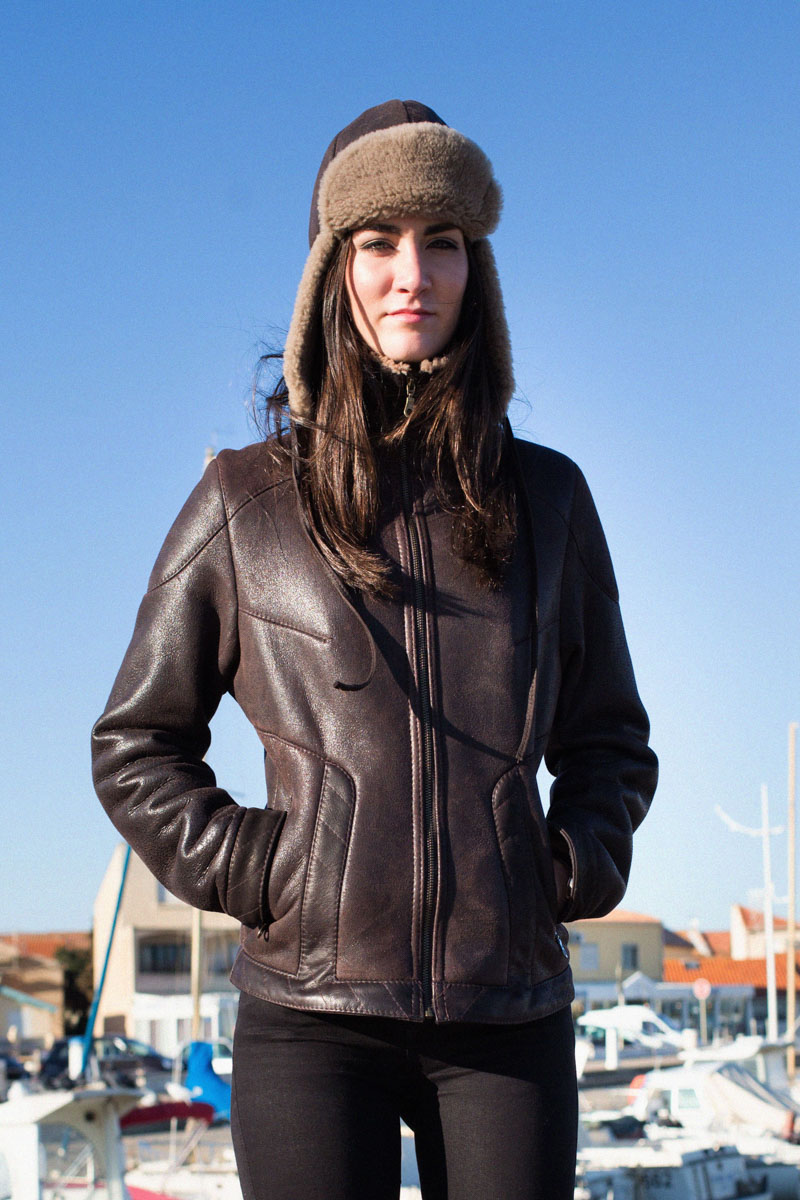 blouson femme en peau retournee